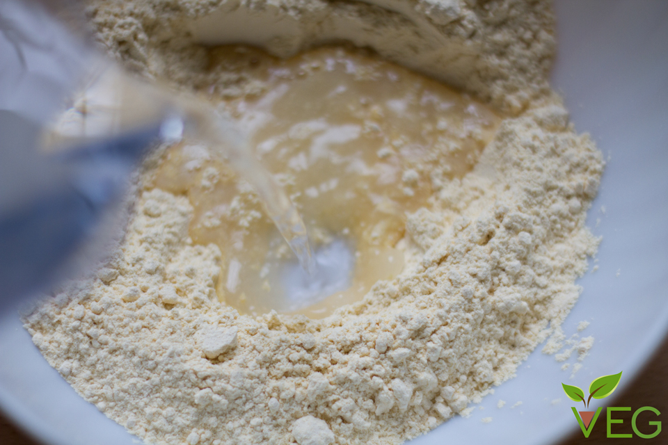 Versate l’acqua nella farina di ceci stando attenti a scioglierla senza fare grumi. Aiutatevi con una frusta. Lasciate la pastella a riposo per 4h.