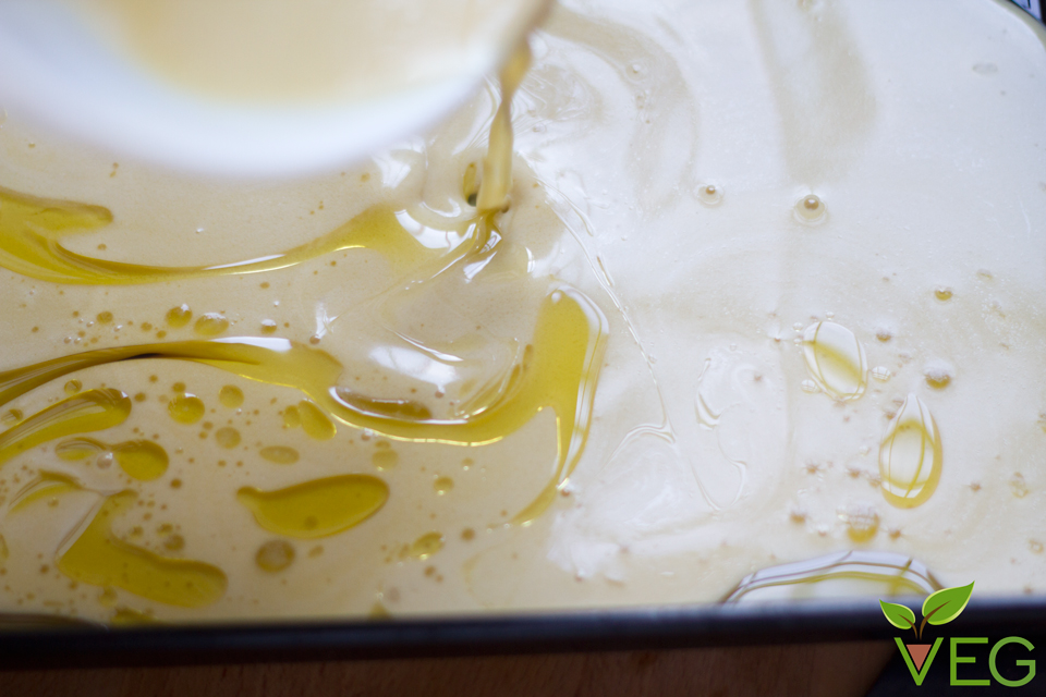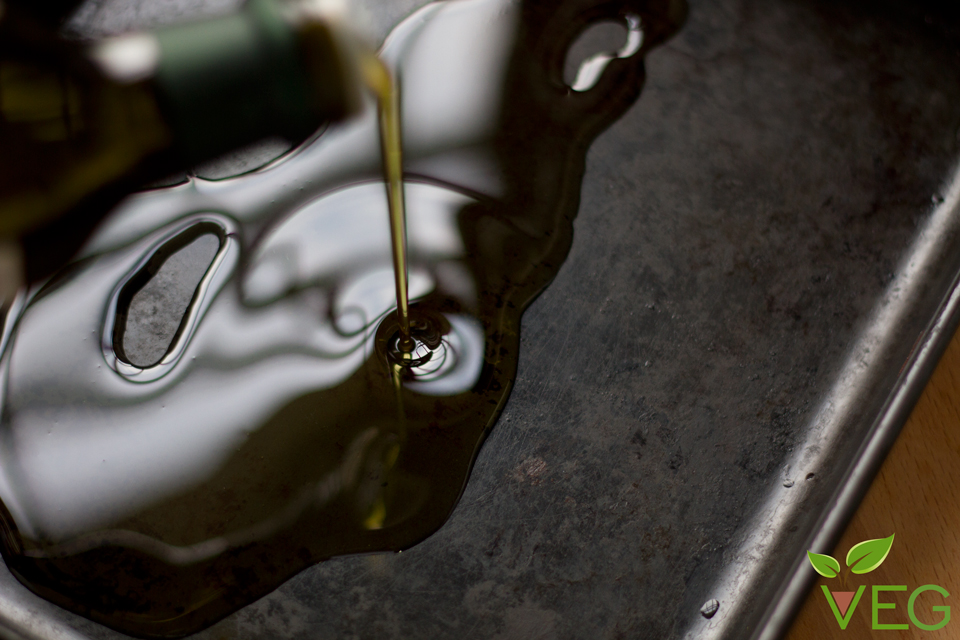 Versate l’altra metà dell’olio in una teglia piana da forno.