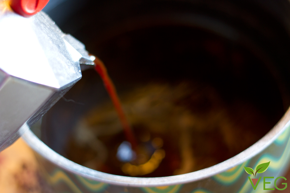 Preparate del caffè dalla moka o dalla macchinetta e versatelo nello sciroppo di zucchero; fate raffreddare del tutto.