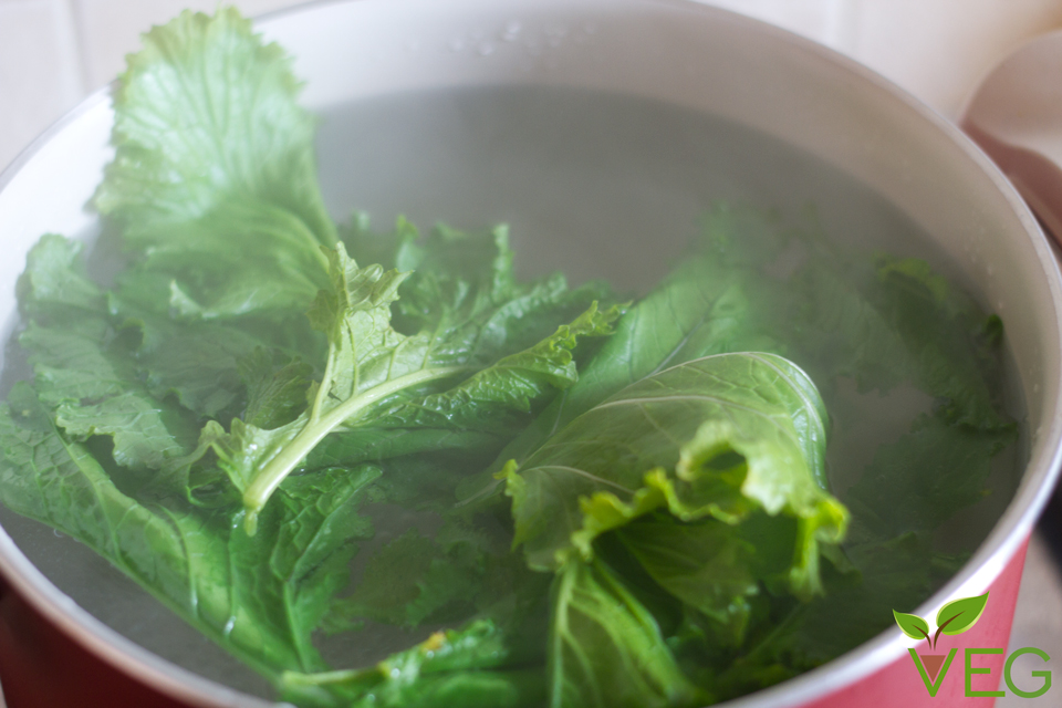 Cuocete a parte per 2 min le foglie nell’acqua che vi servirà per cucinare le orecchiette.