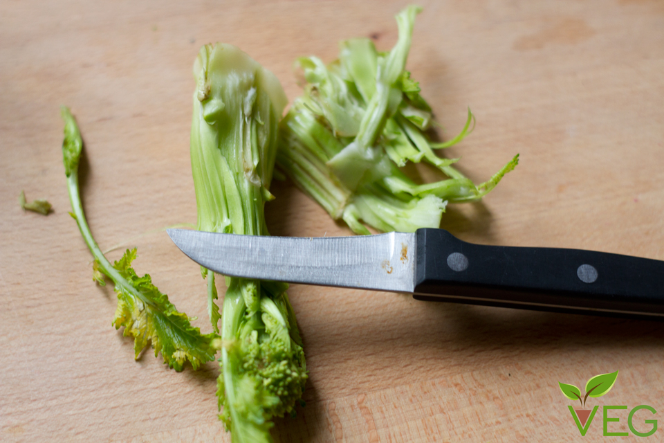 Spellate dalla buccia esterna le cime di rapa e cucinatele nell’acqua per circa 3 min quindi scolatele e fatele a pezzettini grossolani.