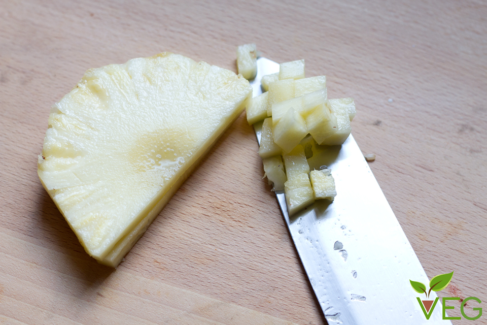 Aggiungete in padella l’ananas e fatelo caramellare leggermente.