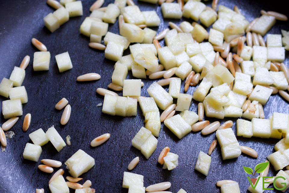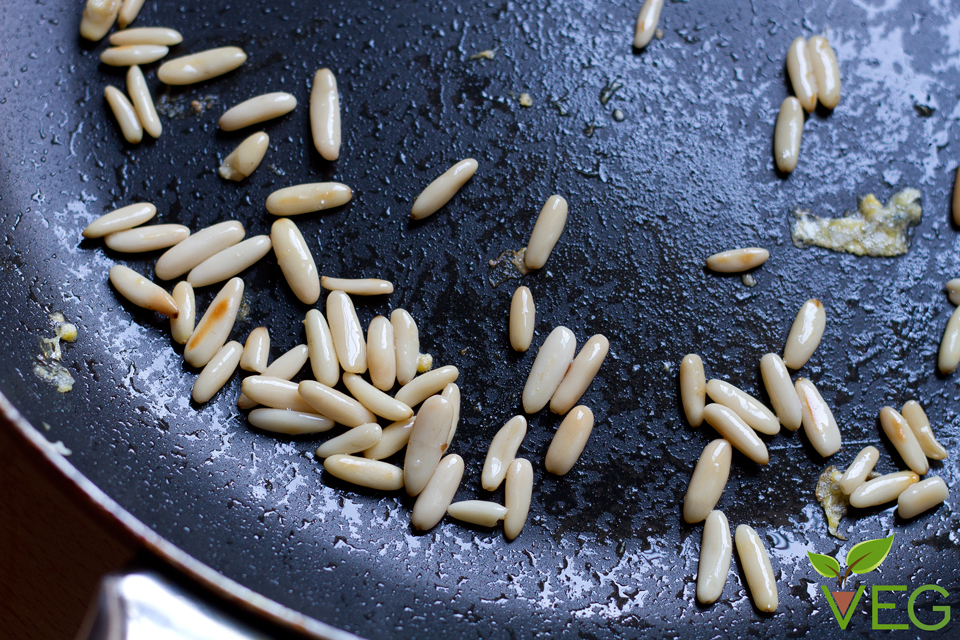 Fate saltare in padella i pinoli fino a che non saranno ben abbrustoliti.