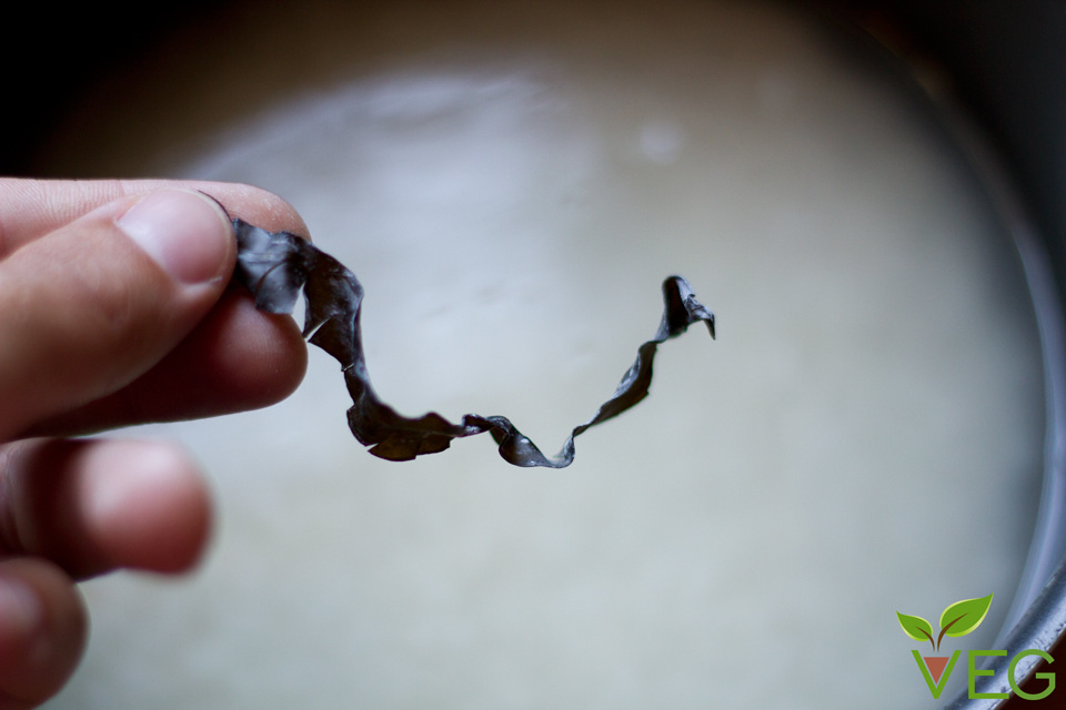Aggiungete l’alga kombu tagliuzzata con la forbice in modo che sprigioni più aroma.