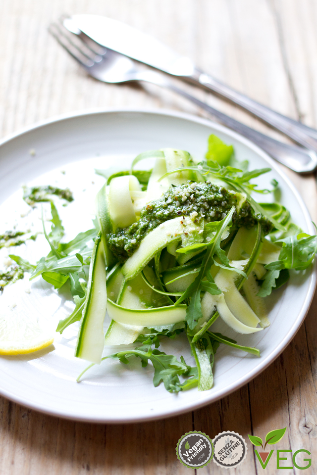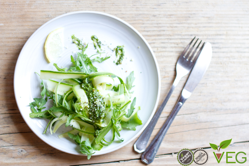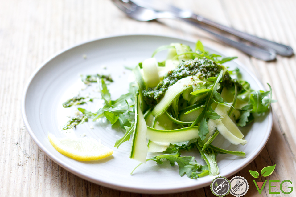TAGLIATELLE DI ZUCCHINE CON PESTO DI RUCOLA – RICETTA CRUDISTA